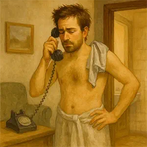 Cuando el vapor ya salía del baño como un susurro invitándome a entrar, me levanté, me desnudé sin pensar y fui a buscar lo que necesitaba. Abrí el segundo cajón de la mesilla de noche y allí estaba, reluciente, solitario, ocupando todo el cajón: mi único calzoncillo limpio. Lo cogí, y justo en ese momento sonó el teléfono. Una llamada inesperada, como las que solo llegan cuando estás a punto de no necesitarlas.